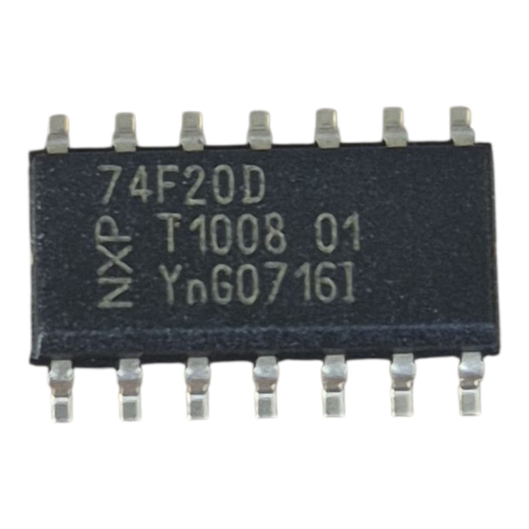 O N74F20D é um CI lógico da família 74F que contém duas portas NAND de 4 entradas cada. Ideal para manutenção eletrônica, automação, projetos digitais e reposição em placas industriais.